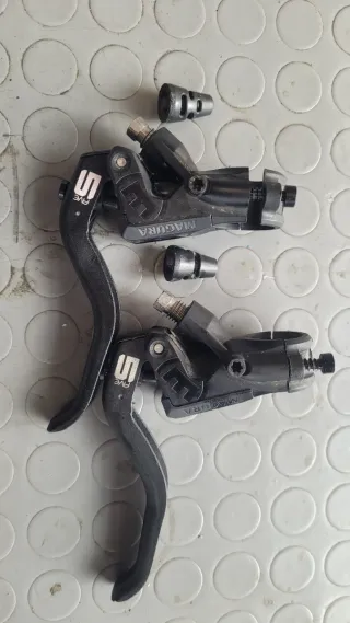 Manetas de freno Magura MT5. En buen estado, se quitan por cambiarlas a shimano para hacer shigura. Incluye el conector, puedo incluir el pin y la olivilla sumando su valor. Tienen el tacto normal de estos frenos.