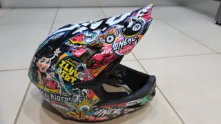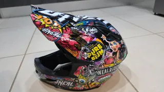 Casco de MOTO SCOTLAND con un diseño llamativo en negro y amarillo neón. Talla S 55/56 - Diseño con gráficos de llamas. - Visera pronunciada. - Interior con rejilla.