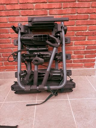 Portabicicletas plegable para coche, ideal para transportar bicicletas de forma segura. - Estructura robusta de metal y plástico. - Correas de sujeción incluidas. - Plegable para fácil almacenamiento.