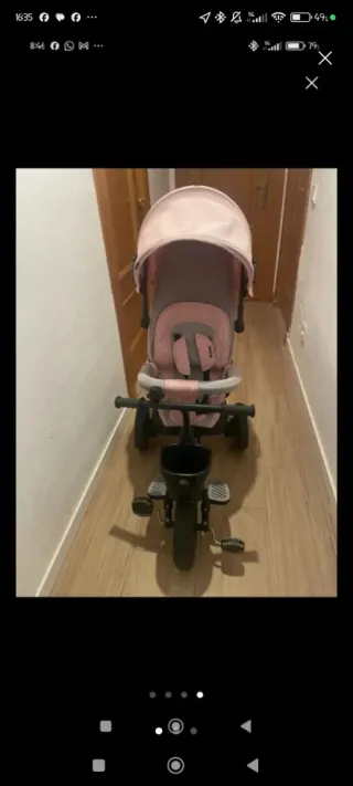 Triciclo infantil en color rosa, ideal para los más pequeños. - Diseño moderno y funcional. - Capota para proteger del sol. - Barra de empuje para padres. - Reposapiés. - Cesta de almacenamiento.