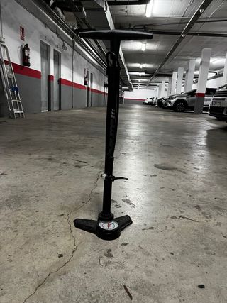 Bomba de pie Crivit para inflar neumáticos. - Base ancha para mayor estabilidad. - Manómetro integrado para control de presión. - Mango ergonómico para un agarre cómodo.
