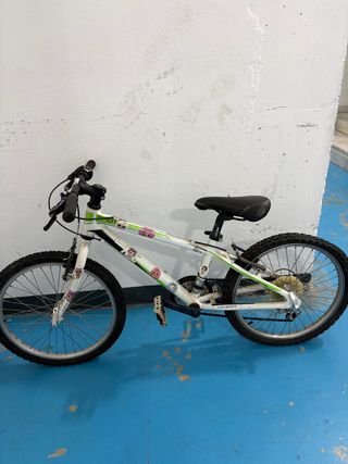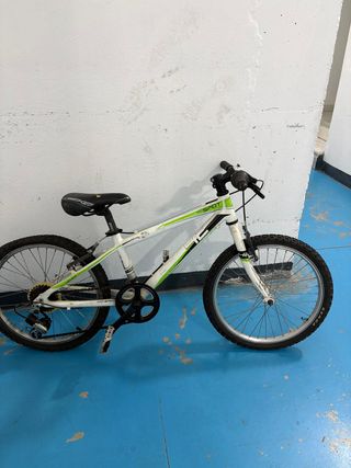 Bicicleta infantil de la marca Rockrider, modelo ST120 tamaño 20 pulgadas. Ha tenido muy poco uso. - Color blanco con detalles azules. - Ruedas como nuevas
