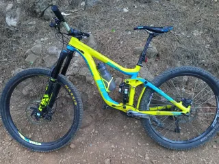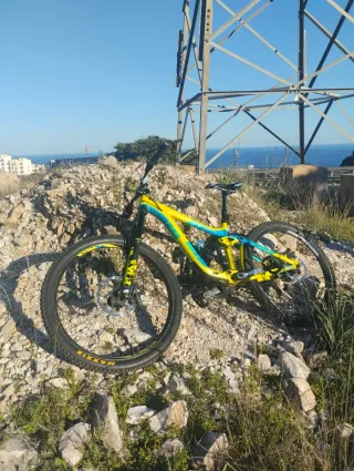 Bicicleta de enduro Giant 2016 en color amarillo y azul. Ideal para terrenos difíciles. - Cuadro de aluminio. - Horquilla Fox 36 160 mm - Ruedas Maxxis. - Amortiguador trasero rock shok monarch plus 160 mm - Frenos de 4 pistones La bici funciona bien lo único que la tija va un poco mal y habría que cambiar el buje. Precio algo negociable