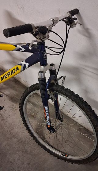 Pongo a la venta esta bicicleta de montaña por falta de uso. Es una base excelente para alguien que busque un proyecto de restauración o quiera piezas 100% originales, ya que no se ha modificado nada desde su compra. Componentes: Todo es original de serie. Estado estético: Presenta óxido en varias partes del cuadro y componentes debido al tiempo guardada. Con una buena limpieza y tratamiento puede mejorar mucho. Puños: El agarre izquierdo tiene rayones visibles (ver fotos). Ruedas: Están desinfladas. No puedo asegurar si es solo falta de aire o si necesitan un cambio.