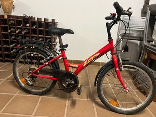 Bicicleta infantil de color rojo, ideal para los más pequeños. - Cuadro de metal resistente. - Ruedas de 20 pulgadas. - Portabultos trasero. - Guardabarros delantero y trasero.