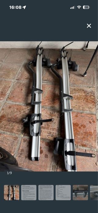 1 Portabicicletas Thule de aluminio. - Diseño robusto y ligero. - Mecanismo de sujeción seguro. - Compatible con diferentes tipos de bicicletas.