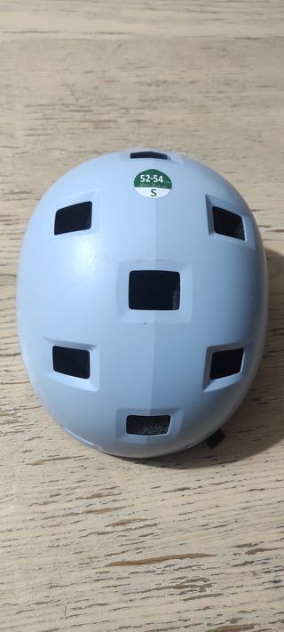 Casco protector para patines, patinete y skate, diseñado para niños. Cuenta con un diseño moderno y ventilado. - Talla S (52-54 cm). - Color azul claro. - Múltiples orificios de ventilación.