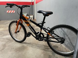 Bicicleta infantil en buen estado, lista para nuevas aventuras. - Rueda de 20 pulgadas. - Combinación de colores naranja y negro. - Diseño deportivo.