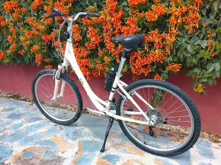 Bicicleta de paseo ciudad, marca Liv (Giant), modelo sedona. Talla S. 26 pulgadas. Es una bicicleta de paseo alta gama. Tiene 21 velocidades, piñón especial que permite subir cuestas difíciles. Amortiguación delantera y en el sillín. Es muy ligera, está fabricada en aluminio. Ruedas marca Kenda, están nuevas. Componentes: Sr Santour (horquilla, pedales y bielas y Shimano Altus. Incluye una luz delantera de 3 posiciones luz larga, de posición e inermitente, un portabidón y botella (sin estrenar). Posición de conducción recta y relajada.