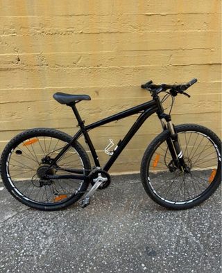 La B'Twin RockRider 540 es una bicicleta de montaña rígida de nivel de entrada a intermedio, ideal para rutas recreativas y desplazamientos urbanos. Características principales: Cuadro: Aluminio 6061 duradero. Suspensión: Horquilla delantera SR Suntour XCR de 100 mm con bloqueo. Transmisión: Sistema Shimano Altus de 27 velocidades (9x3) versátil. Frenos: Frenos de disco hidráulicos de 160 mm (Tektro o similar) para un frenado potente. Ruedas: Ruedas de 27,5 pulgadas con neumáticos B'Twin AllTerrain Light para un buen agarre. Es una opción muy valorada por su durabilidad y la calidad de sus componentes en relación al precio.
