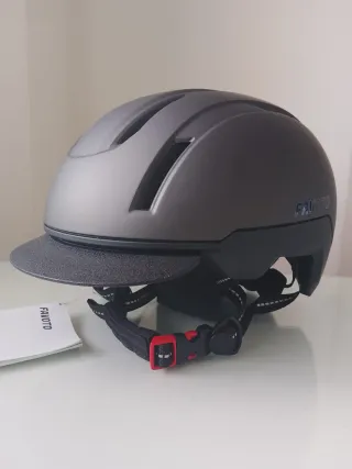 Casco de bicicleta de estilo urbano en color gris grafeno. Regulador para ajuste a medida en la parte trasera. Talla L 57-61cm. Nuevo sin estranar. Diseñado para ofrecer comodidad y protección. - Visera integrada. - Sistema de ventilación. - Correa ajustable con cierre. - Marca: FAVOTO