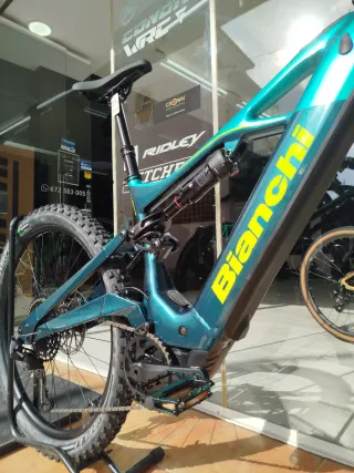 Bicicleta eléctrica Bianchi E-Vertic FX 9.1. -TALLA M -Cuadro: aluminio E-Vertic -Pantalla Kiox 300 -Motor: Bosch Performance Line CX 5°Gen 100Nm -Batería: Bosch Powertube 800 Wh -Horquilla: RockShox Psylo Silver RC 29" -Amortiguador: RockShox Deluxe Select, 210/52.5 mm -Sram SX Eagle 12v. -Frenos: Sram 4 pistones -Cubiertas: Pirelli Scorpion 29x2.6 -Componentes Veloman #bianchi #ebike #bicielectrica #sram