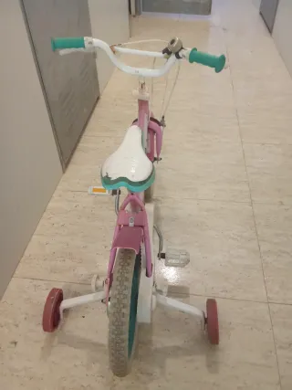Bicicleta infantil de color rosa, ideal para los más pequeños. Incluye ruedines para facilitar el aprendizaje. - Diseño con personajes de Disney. - Ruedas blancas con aro turquesa. - Puños y sillín en blanco y turquesa.