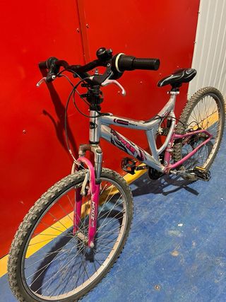 Bicicleta Power Rosa en perfecto estado con muy poco uso. Muy comoda ya que tiene doble suspension. Para cualquier duda o info preguntar por privado. ❗️Solo Venta En Persona❗️Haz una OFERTA y te hare un DESCUENTO exclusivo❗️ - Cuadro de acero inoxidable resistente. - Doble Suspension super comoda para rutas y para el dia a dia. - Estado Perfecto y lista para usar con camaras y ruedas nuevas recién cambiadas. - Precio algo negociable. Recogida en Mano en Paiporta, Valencia..