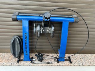 Rodillo de entrenamiento para bicicleta de la marca Ultrasport. Ideal para mantener la forma física en casa. - Color azul. - Diseño plegable para fácil almacenamiento.
