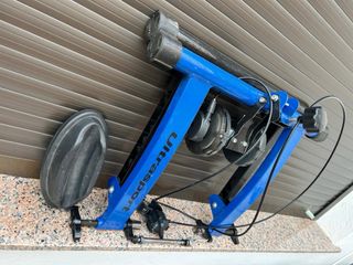 Rodillo para entrenamiento de ciclismo en interiores. - Estructura robusta de color azul. - Incluye soporte para rueda delantera.