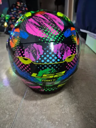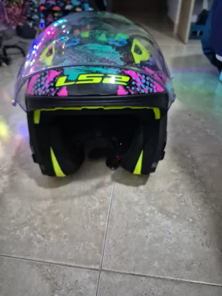Casco infantil con un diseño llamativo y colorido. - Diseño LS2. - Visera transparente. - Detalles en amarillo neón.