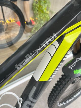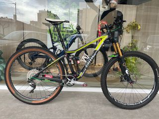 Bicicleta de montaña Trek con horquilla Fox Factory Kashima. Cuadro de carbono con isospeed talla XS. Bicicleta full carbono ideal para competir, con un peso de 8.15kg. - Cuadro de carbono color azul claro con detalles naranjas y rojos. - Ruedas de 27.5 carbono con buje DT Swiss 240 Tubelizadas. - Neumáticos Vittoria Mezcal y Barzo nuevas. - Manillar Alpcross carbono. - Horquilla Fox Factory step cast remote. - Grupo sram xx1 11v. - Frenos sram level tim. - Bielas Rotor Kapic con pedalier y eje nuevo. - Sillín syncros tofino.