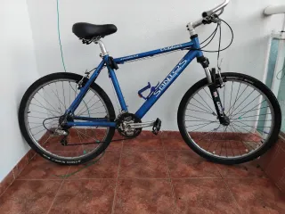 Bicicleta de montaña (MTB) para adultos, con ruedas de 26 pulgadas. Bien conservada, aunque necesita una pequeña puesta a punto. Dispone de 21 velocidades; cambio marchas Shimano; sillín ergonómico; cuadro de aluminio. Se vende por falta de espacio.