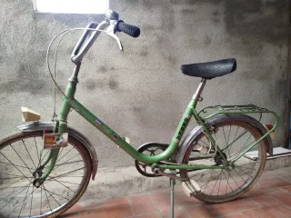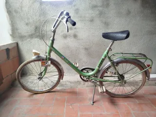 Bicicleta Orbea clásica de estilo vintage, en color verde. Con piezas originales Orbea. Frenos en funcionamiento, ruedas centradas, pintura original y en buen estado, neumáticos para cambiar, desinchados. - Ruedas de 20 pulgadas. - Guardabarros delantero y trasero. - Portabultos trasero. - Pata de cabra.
