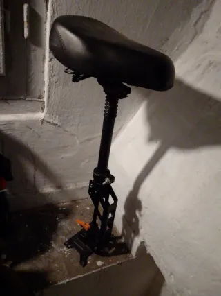 Asiento cómodo y ajustable para patinetes eléctricos. Se pliega fácilmente para su almacenamiento. No hago envíos solo en venta en🤝 - Altura regulable. - Diseño plegable. - Base estable.