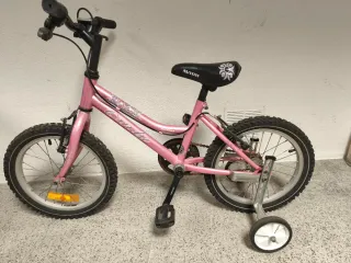 Bicicleta infantil Avigo de 16 pulgadas en color rosa. - Ruedines incluidos. - Sillín con diseño floral. - Manillar con puños de goma.