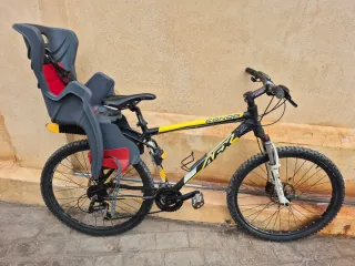 Bicicleta de montaña Conor con asiento infantil incluido. Ideal para paseos familiares. - Color negro y amarillo. - Ruedas todoterreno. - Suspensión delantera.