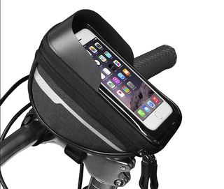 Alforja para bicicleta con soporte para móvil integrado. Ideal para llevar tu teléfono de forma segura mientras pedaleas. - Pantalla táctil. - Cremallera. - Visera. - Cintas reflectantes.