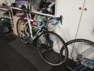 Bicicleta de carretera Merida Ride en talla S. Ideal para iniciarse en el ciclismo. Cuadro de aluminio ligero con horquilla de carbono, muy cómoda y estable. Equipada con grupo Shimano Sora 2x9 velocidades, doble plato y frenos de zapata. Ruedas Merida Race 700c, manillar de carretera con cinta en buen estado. Perfecta para ciclistas de entre 1,50 m y 1,62 m aprox. Bicicleta cuidada, sin golpes ni caídas, lista para rodar. Cuadro: Merida Ride aluminio Horquilla: Carbono Transmisión: Shimano Sora (2x9 velocidades) Frenos: Caliper Ruedas: 700c Merida Race Talla: S (pequeña) Color: Negro/blanco