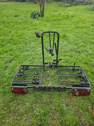 Portabicicletas de estructura metálica, diseñado para transportar bicicletas. - Brazos de sujeción ajustables. - Correas de seguridad incluidas. - Base estable con soportes de goma.
