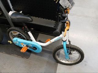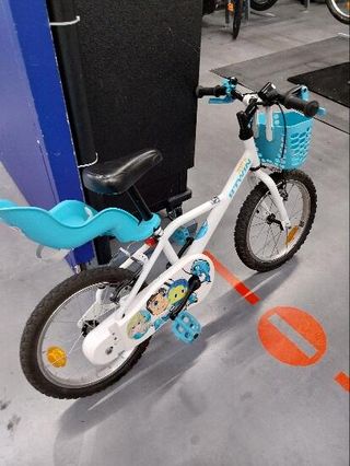 Bicicleta infantil B'TWIN de 14 pulgadas, ideal para los más pequeños. Nueva costó 200 euros Comprada en diciembre 2023 y con uso de una sola niña. - Color azul. - Sillín marrón. - Ruedas color crema.