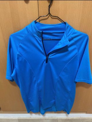 Camiseta de ciclismo Bpro de color azul. - Diseño con cuello alto y cremallera. - Tejido técnico transpirable. - Mangas cortas. - talla L