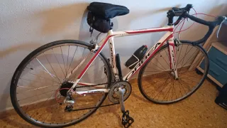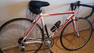 Bicicleta de carretera Orbea con cuadro blanco y detalles rojos. - Cuadro Orbea. - Ruedas de carretera. - Portabidón negro. - Bolsa de sillín negra. Cubiertas nuevas, todo el cableado nuevo, casco y bomba de regalo,se puede probar , va como la seda, está revisada , frenos de Shimano.
