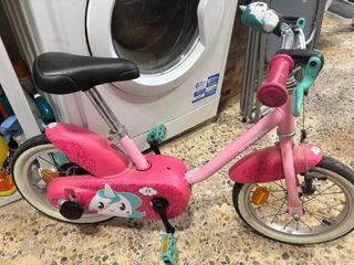 Bicicleta infantil de color rosa, ideal para los más pequeños. - Marca BTWIN. - Diseño divertido con detalles. - Ruedines incluidos.
