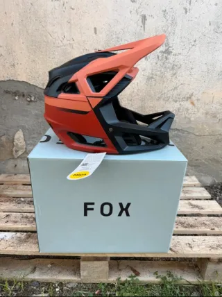 Casco integral Fox Proframe Rizer en colores negro, naranja y rojo. Diseñado para la máxima protección y ventilación. - Incluye sistema MIPS. - Visera ajustable. - Cierre de doble anilla D.