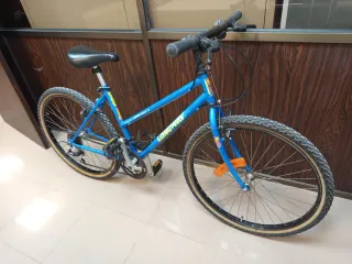 Bicicleta de montaña rígida (MTB) ideal para paseos, ciudad, carril bici y caminos de tierra. Robusta, cómoda y fiable, perfecta si buscas una MTB sencilla y sin complicaciones. Características: • Ruedas de 26 pulgadas (estándar, ideal para encontrar recambios • 21 velocidades (3x7) • Cambio trasero Shimano • Frenos V-Brake, eficaces y fáciles de mantener • Cuadro de acero resistente • Horquilla rígida (menos mantenimiento) • Manillar elevado para postura cómoda • Incluye doble portabidón • Talla M aprox. (mi padre mide 175 cm) Funciona perfectamente. Siempre guardada en interior. 📍 Entrega en mano en Poblenou (Barcelona)