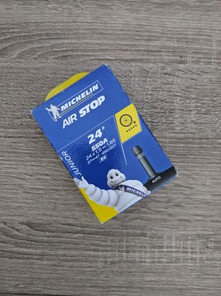 Una unidad de cámara para bicicleta de 24 pulgadas Auto de la marca Michelin Air stop. Nueva, a estrenar. Medidas 550 a -24 x 1,50/1,85 Valvola st - auto 34 mm. E4 37/47-490/507 #bicicleta #bici #rueda #camara #cubiertas #seguridad #ciclismo #accesorios #componentes #michelin #Presta #nuevo #aire #ASINB001DCJMPI #3528701989488