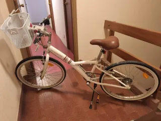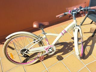 Bicicleta Btwin Poply 300 en color blanco, con cesta delantera.24 Pulgadas La bici está nueva se uso 2 veces y estába guardada en el desván,está como nueva También tengo los ruedines de los lados - Diseño juvenil y práctico. - Cesta de metal blanca. - Sillín marrón. - Ruedas con banda blanca.