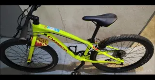 Bicicleta de montaña Orbea MX24 en color amarillo neón. Impecable, sólo tiene la marca que se muestra en la foto de llevarla en el portabicis. Casi sin uso. - Cuadro de aluminio. - Ruedas Kenda de 24 pulgadas.