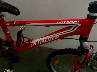 Se vende bicicleta Specialized Hotrock en color rojo. - Cuadro de aluminio. - Ruedas de 24 pulgadas. - Frenos V-brake. - Suspensión delantera. - Medida 13 Hay que cambiarle las ruedas