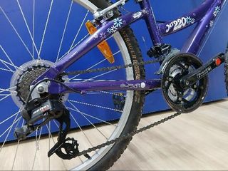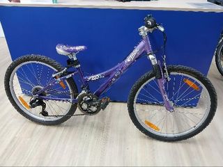 bicicleta de 24 pulgadas de rueda, en muy buen estado y con poco uso. Horquilla delantera, 3 platos, cambio shimano de 6 velocidades, portabebidas pata lateral, refectante trasero...