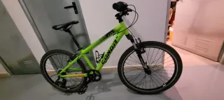 Bicicleta de montaña Conor 440 en color verde lima y negro. Lista para usar - Ruedas de 24 pulgadas. - Cuadro resistente aluminio ligero. -Transmision monoplato. -Frenos V-Brake. - Buen estado general.