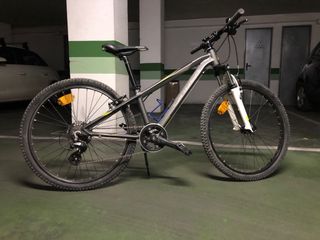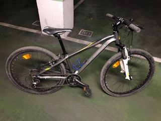 Bicicleta Rockrider de 24 pulgadas, ideal para jóvenes ciclistas. - Cuadro de aluminio ligero. - Frenos V-brake. - Cambio Shimano de 6 velocidades. - Suspensión delantera.