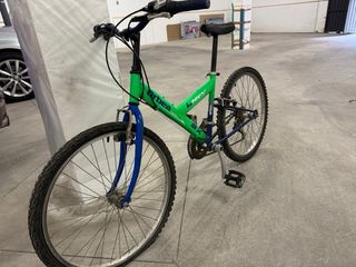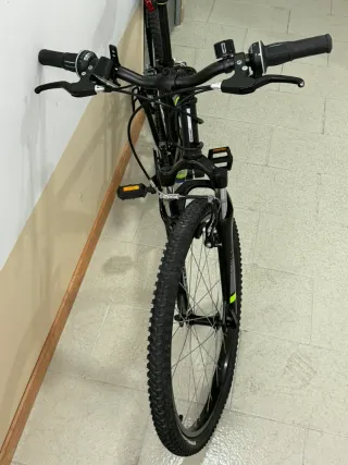 Bicicleta Rockrider de 24 pulgadas, ideal para niñ@s. - Color verde lima y negro. - Ruedas de 24 pulgadas en buen estado. - Frenos V-brake. - Sillín. - Cambios shimano. - 18 velocidades. - Suspensión delantera en perfecto estado. - Pata de cabra.