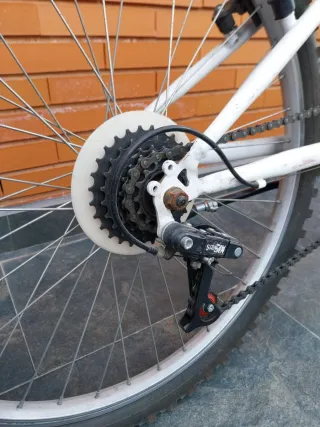 Bicicleta Freerider de 24 pulgadas en color blanco. - Cuadro de bicicleta. - Ruedas de bicicleta. - Sillín de bicicleta. - Manillar de bicicleta. - Cambios funcionan pero para revisar