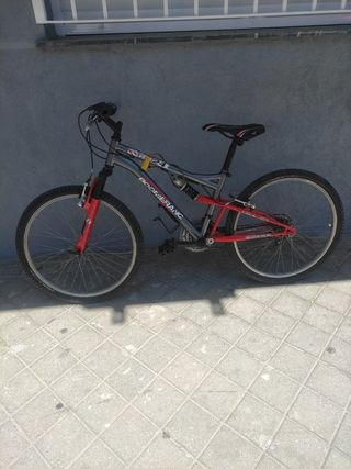 Bicicleta de montaña de 24 pulgadas con doble suspensión, en buen estado. - Cuadro resistente. - Llantas en buen estado. - Suspensión delantera y trasera.