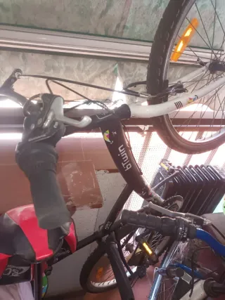 Bicicleta Btwin de montaña con ruedas de 24.5 pulgadas y talla M. Ideal para iniciarse en el ciclismo. Se tiene que canviar las dos ruedas, que son 40€, la resta esta perfecto. - Cuadro de aluminio. - Suspensión delantera y trasera. - Frenos de disco. - Cambio Shimano.