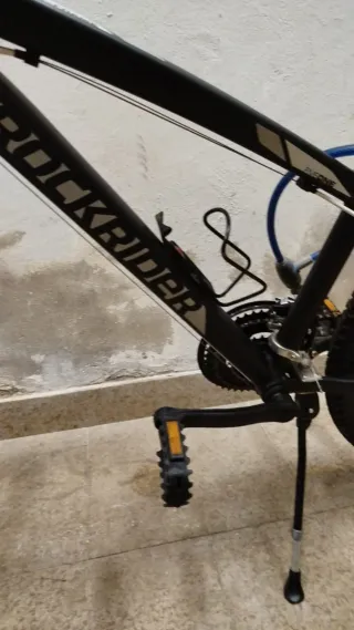 Se vende bicicleta talla 24 modelo Rockrider 5.1 con cuadro de aluminio. Detalles: Talla: 24 pulgadas. Material: Cuadro de aluminio. Estado: Bien conservada, lista para rodar. Equipamiento: Suspensión delantera, cambios de puño giratorio y frenos V-Brake. Extra: Incluye pata de cabra instalada, soporte para botella de agua y candado con llaves.