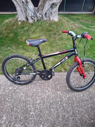 1° Bicicleta infantil con un diseño llamativo en rojo y negro. - Ruedas de 16 pulgadas. - Sillín ajustable. - Pedales antideslizantes. Precio 30€ 2° Bicicleta marca DTB - 5 velocidades llanta 20 pulgadas Precio 50€ 3° Bicicleta marca WYLDEE -Color gris y naranja -6 velocidades shimano -Frenos delanteros de disco trasero zapatas - Ruedas 20 pulgadas Precio 85€ 4° Bicicleta marca DTB color gris y rosa -21 velocidades marca shimano tourney torney - talla 24 pulgadas - modelo high240 - precio 95€