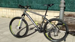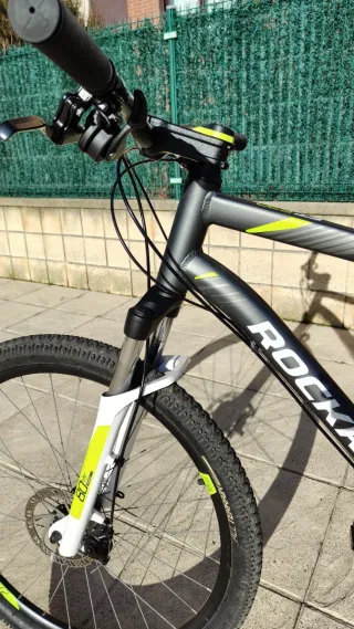 Bicicleta de montaña ROCKRIDER ST 520 en talla XL. Diseñada para ofrecer comodidad y rendimiento en tus rutas. - Cuadro de aluminio. - Suspensión delantera. - Frenos de disco. - Ruedas de 27.5 pulgadas. 24 velocidades Cubierta trasera cambiada recientemente. Cadena,platos y casette con poco uso.